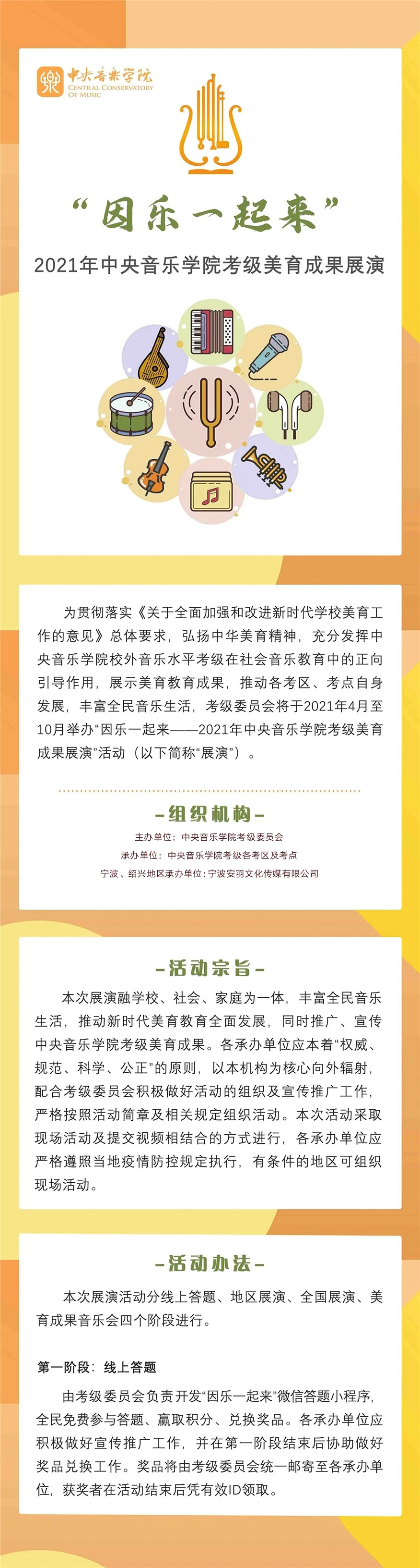 关于举办"因乐一起来“ 2021年中央音乐学院考级美育成果展演宁波、绍兴地区活动的通知