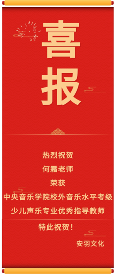 喜报!!!热烈祝贺何霜老师荣获中央音乐学院校外音乐水平考级少儿声乐专业优秀指导教师荣誉