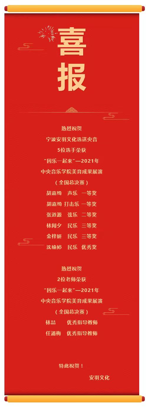喜报!!! | “因乐一起来”——2021年中央音乐学院美育成果展演(全国总决赛)获奖名单