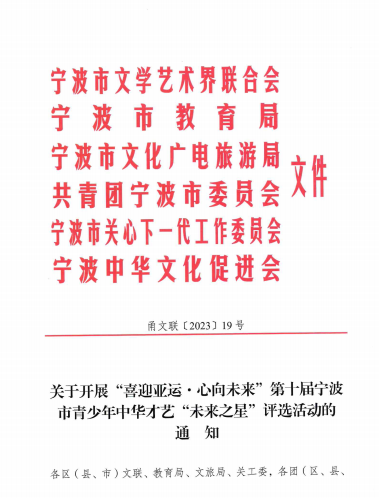坚持以习近平新时代中国特色社会主义思想和党的二十大精神为指导,坚定文化自信,弘扬中华优秀传统文化,树立社会主义核心价值观,热情讴歌新时代,在青少年中大力宣传推广优秀传统文化,展示我市青少年文艺发展新成果,提升城市文化软实力和宁波文化影响力。通过公益评选活动,发现和培育一批青少年才艺“未来之星”,为加快建设中国式现代化市域样板、奋力建设现代化滨海大都市积蓄文艺后备力量。