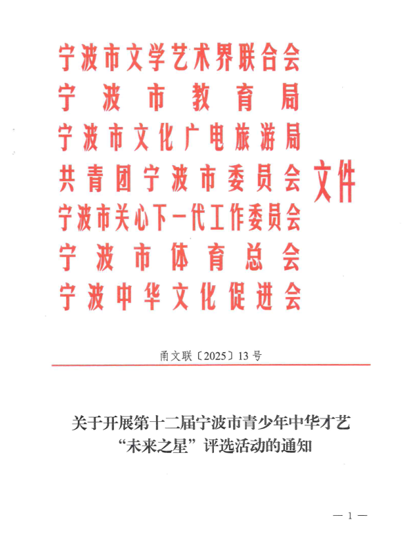 以习近平新时代中国特色社会主义思想为指导,全面贯彻党的二十大和二十届二中、三中全会精神,深入学习践行习近平文化思想,聚焦繁荣港城文化,更好担负起新时代的文化使命,打造青少年美育之都,突出时代性、群众性、先进性、创新性,深入开展青少年中华才艺“未来之星”评选活动,充分展示我市青少年美育新成就,发现和培育一批优秀青少年文艺人才,持续擦亮青少年文艺人才选拔活动品牌,为提升城市文化软实力,加快建设高水平文化强市贡献文艺力量。