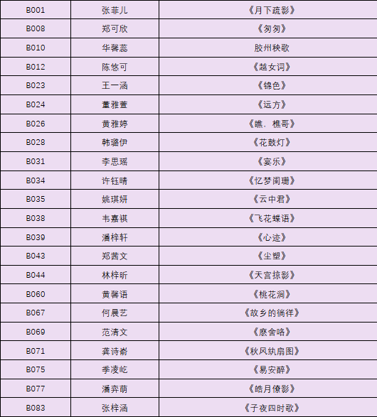 4.选手的参赛曲目时间为3分钟。评选中,评委老师可根据比赛的具体情况中止选手的表演曲目。